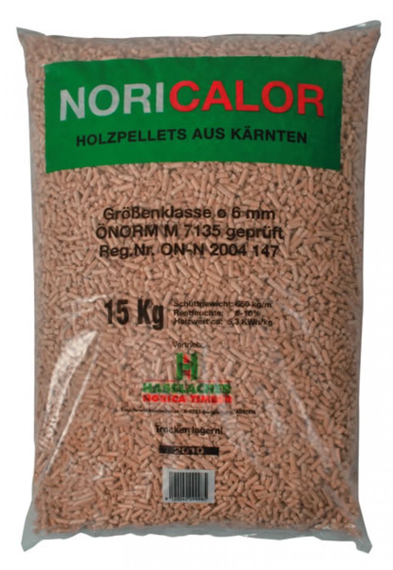 Il pellet NORICALOR è un prodotto certificato di alta qualità, ha le caratteristiche di essere un combustibile naturale. È ricavato esclusivamente da trucioli in legno al cento per cento senza additivi, quindi più salutare, centrifugati ad alta pressione consentendo di avere un tasso minimo di umidità ed un rendimento energetico decisamente superiore alla media.